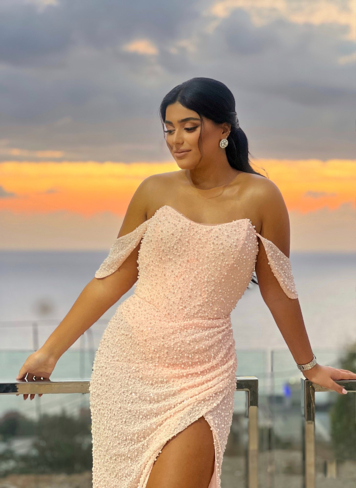 sup916 - Beaded Light Pink Corset Dress