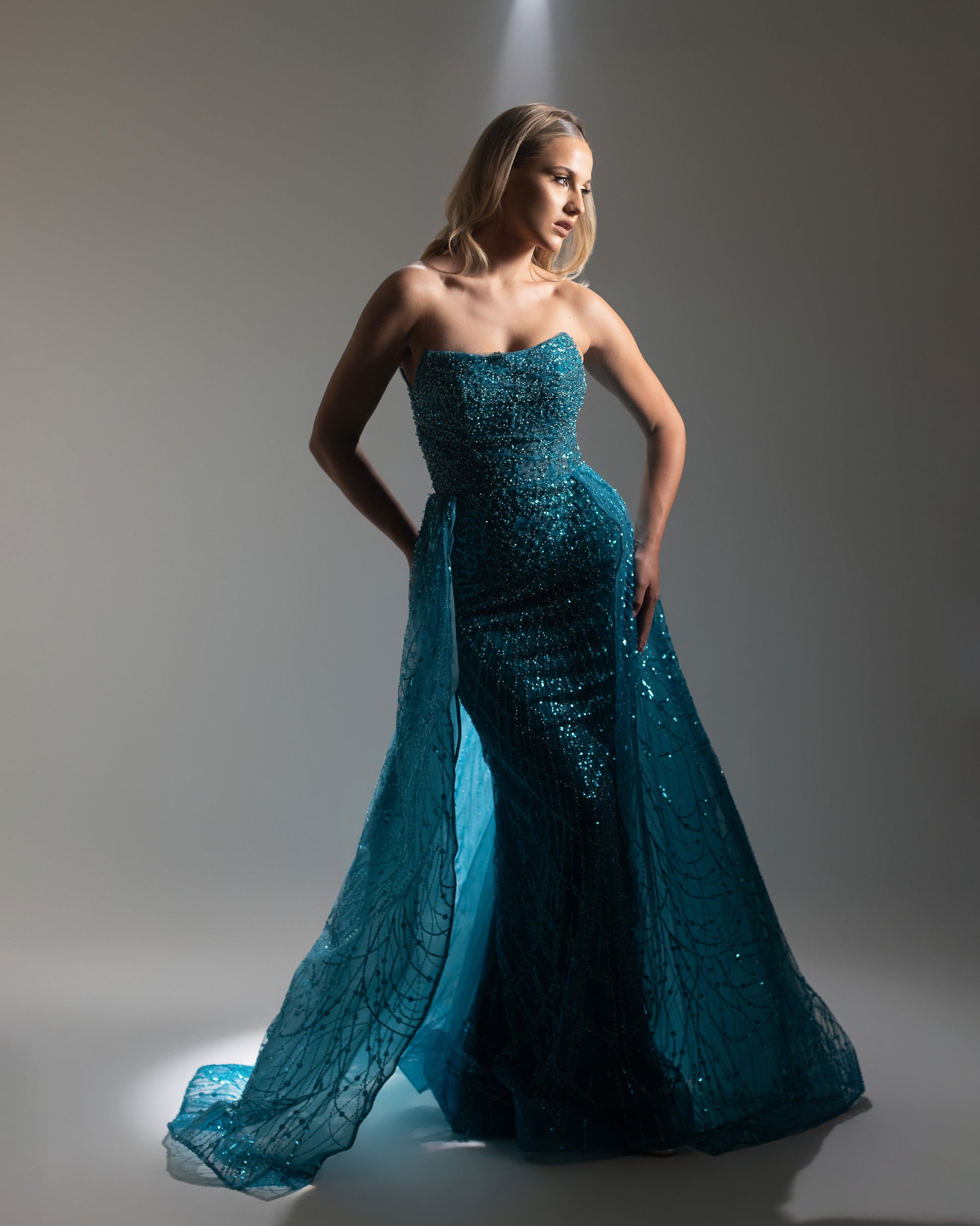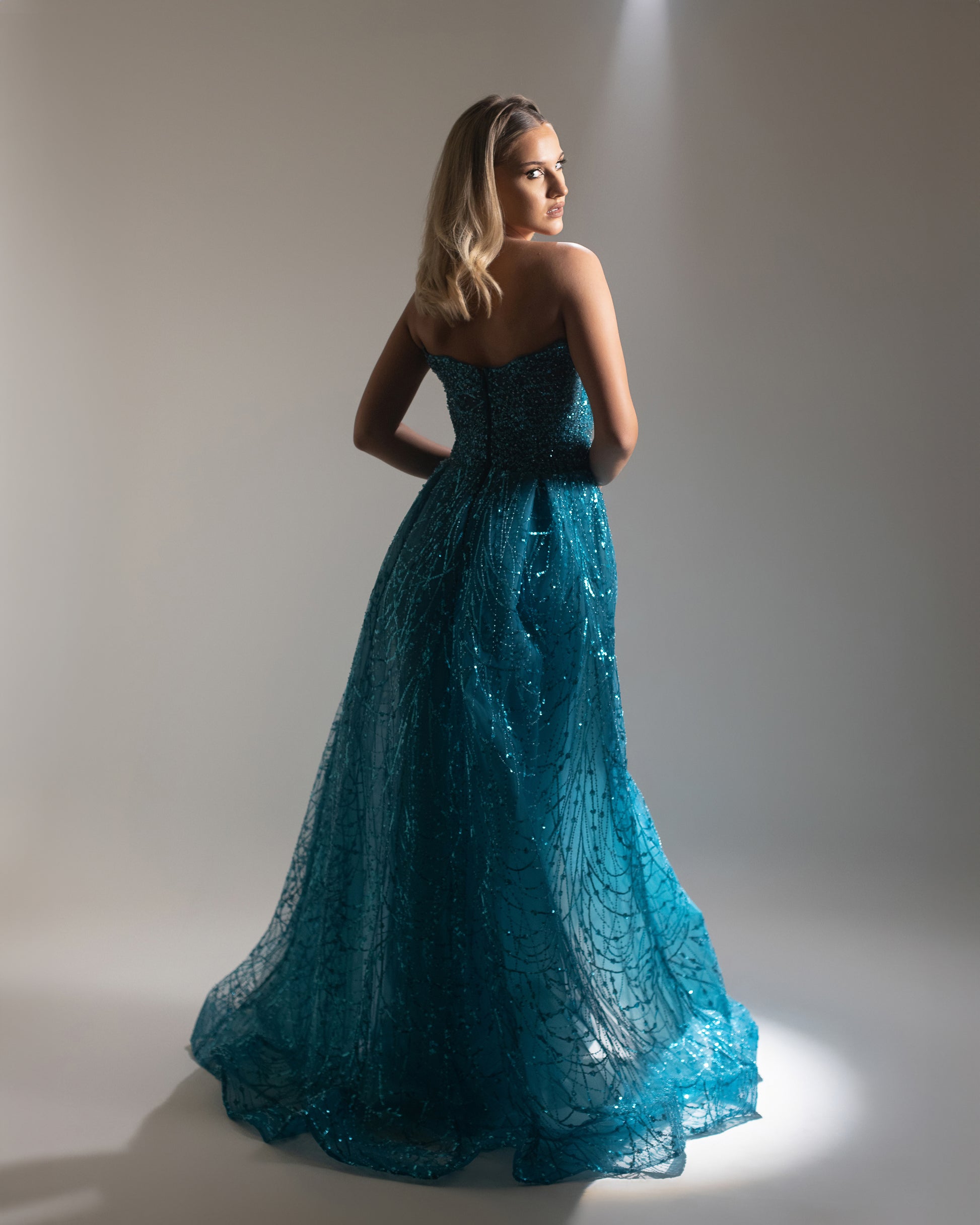 sup746- Embellished corset Petrol Blue With Back Overskirt
