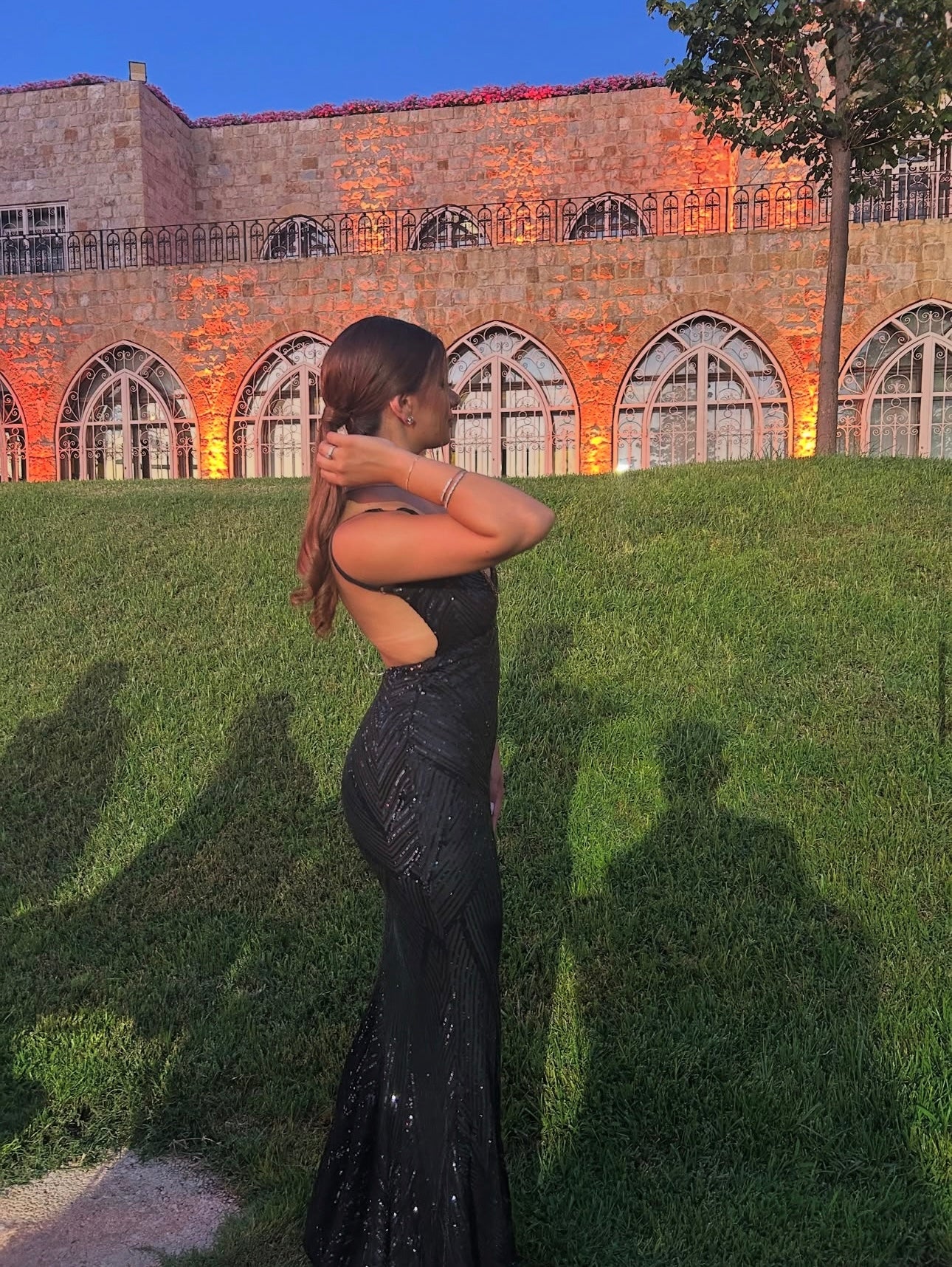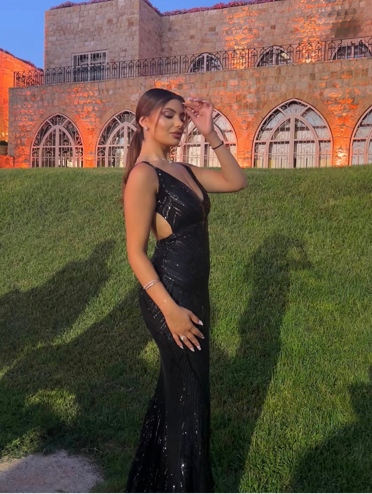 Sup213- Black Sequin Open Back Dress