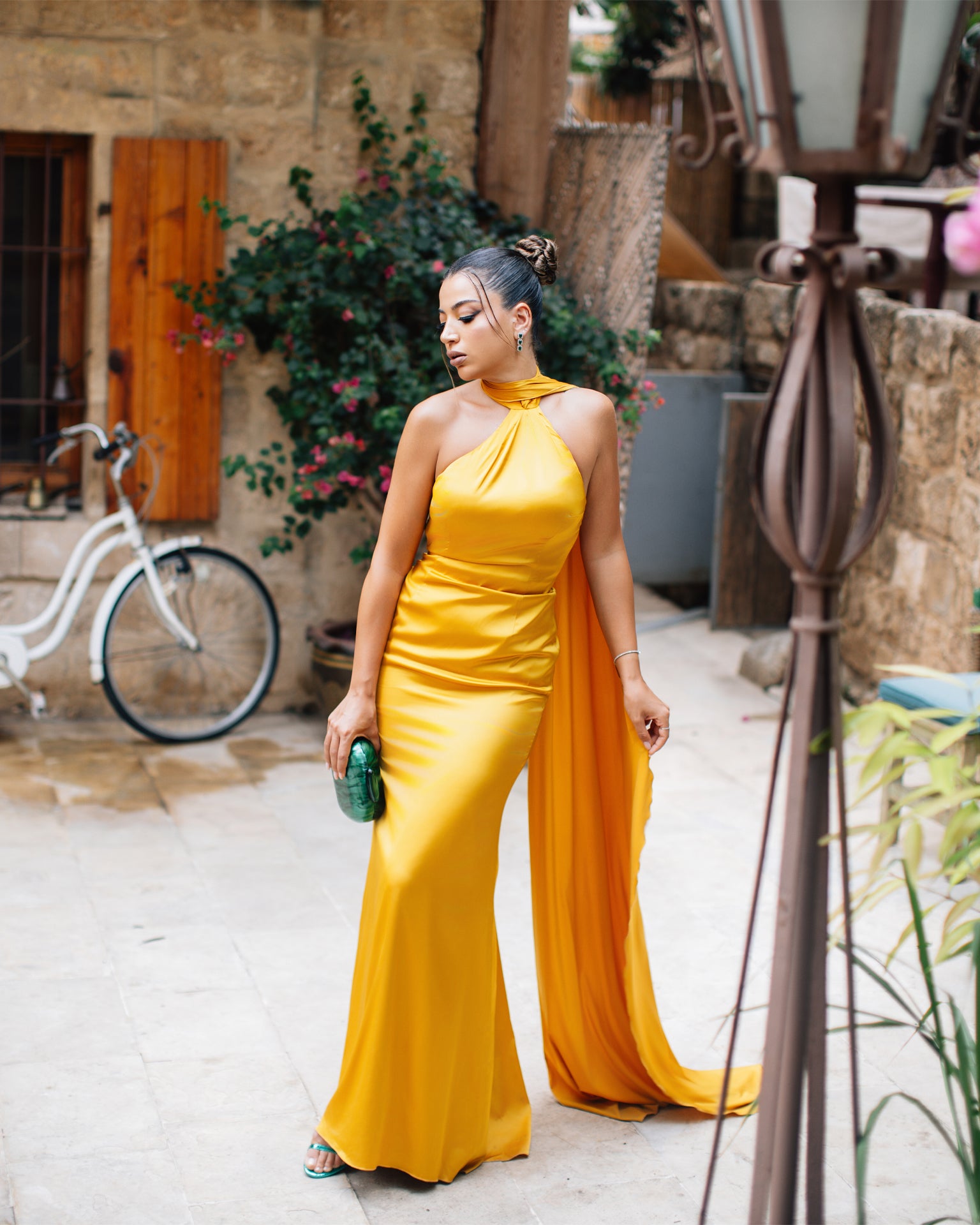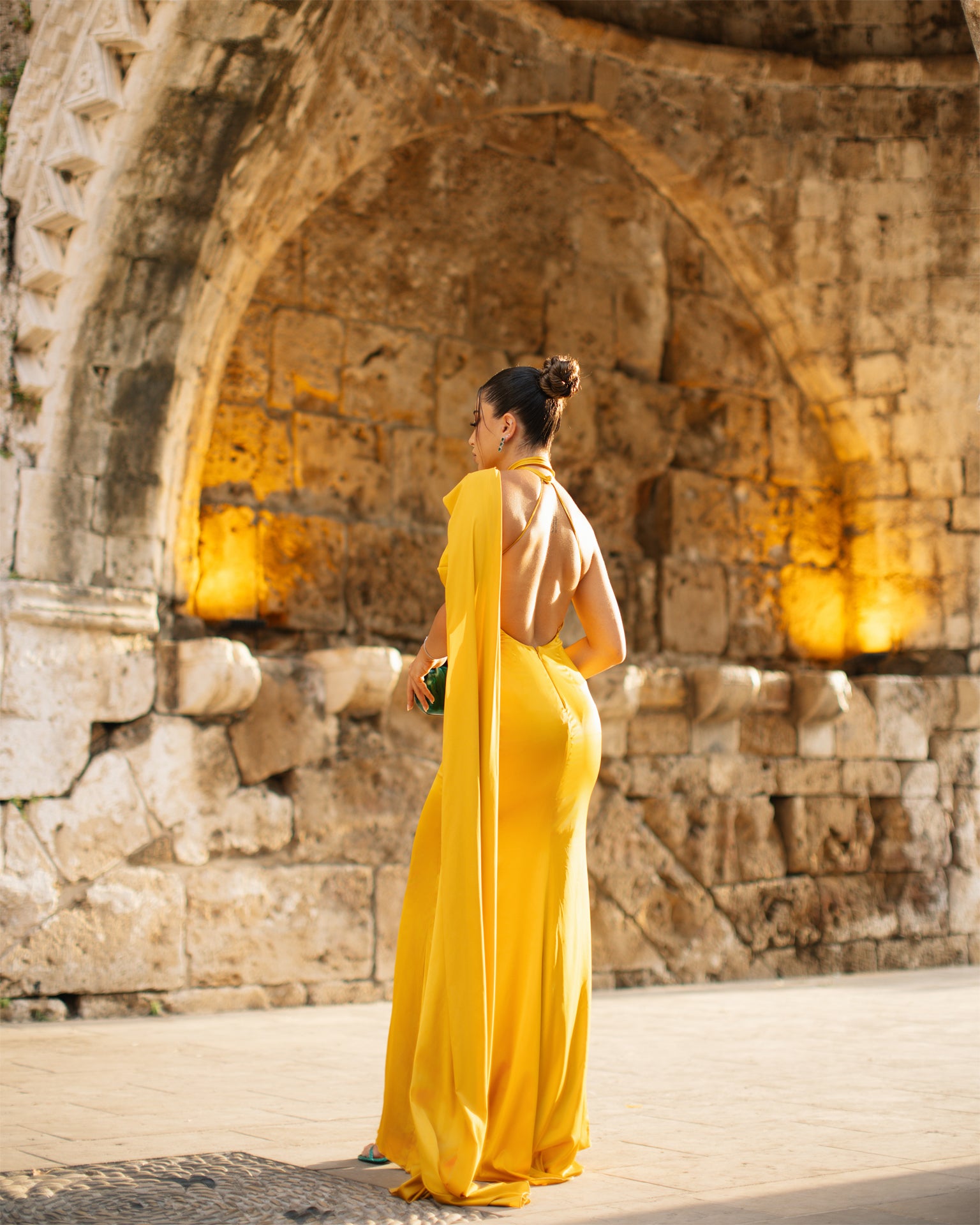 Pdv97- Yellow Satin Mermaid Cut Dress