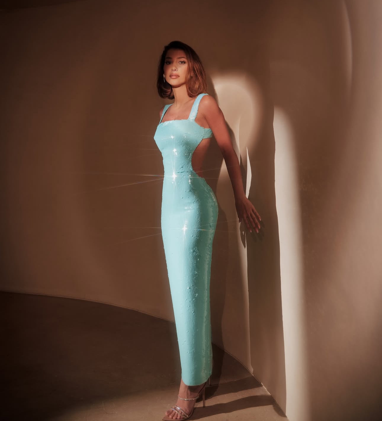 sup807 -Sequin Aqua Open Back Dress